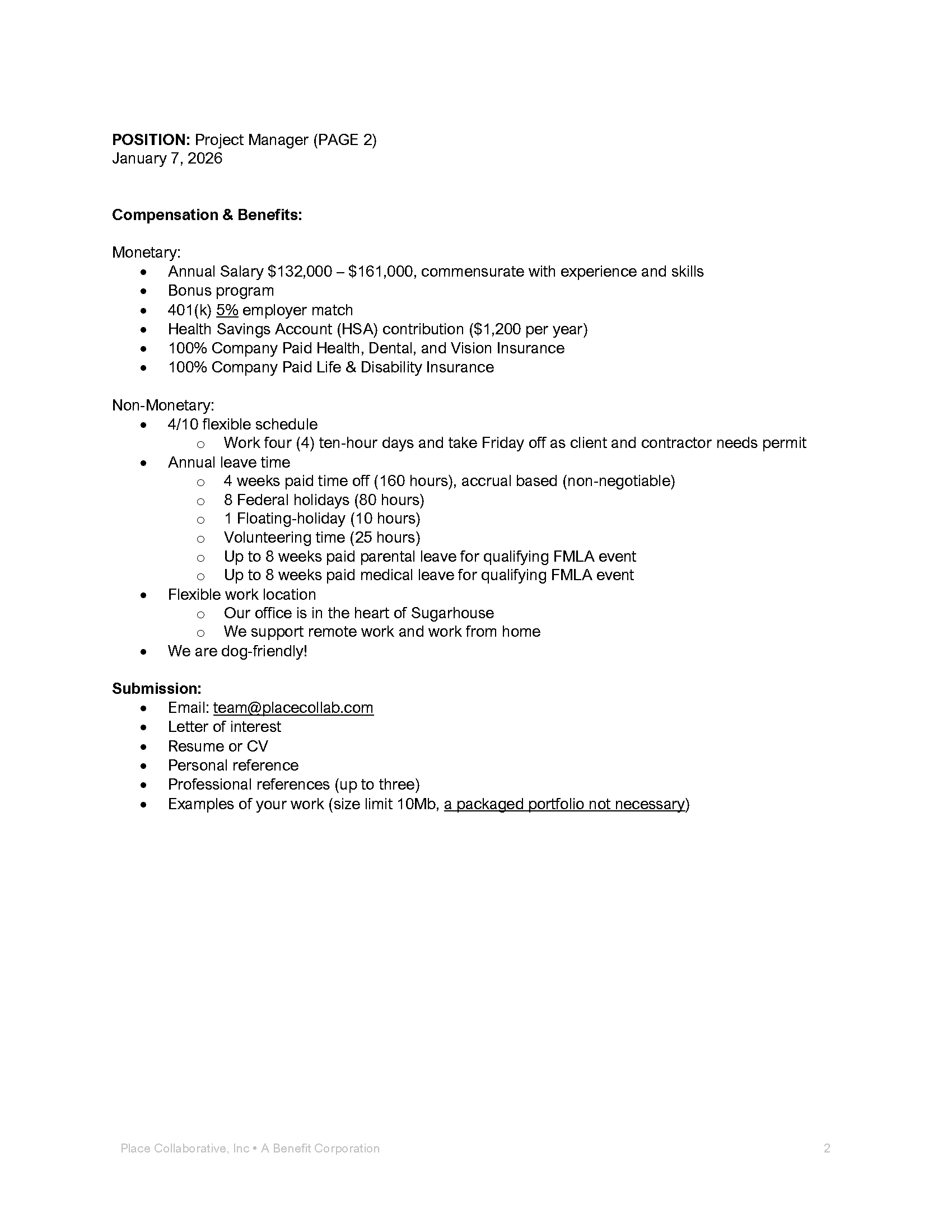 Place Collaborative is looking for like-minded folks who want their work to mean something - work that leads to shared professional fulfillment while also having a positive impact on PLACE (our natural and built environment). This is what we do, and we need your help doing it.