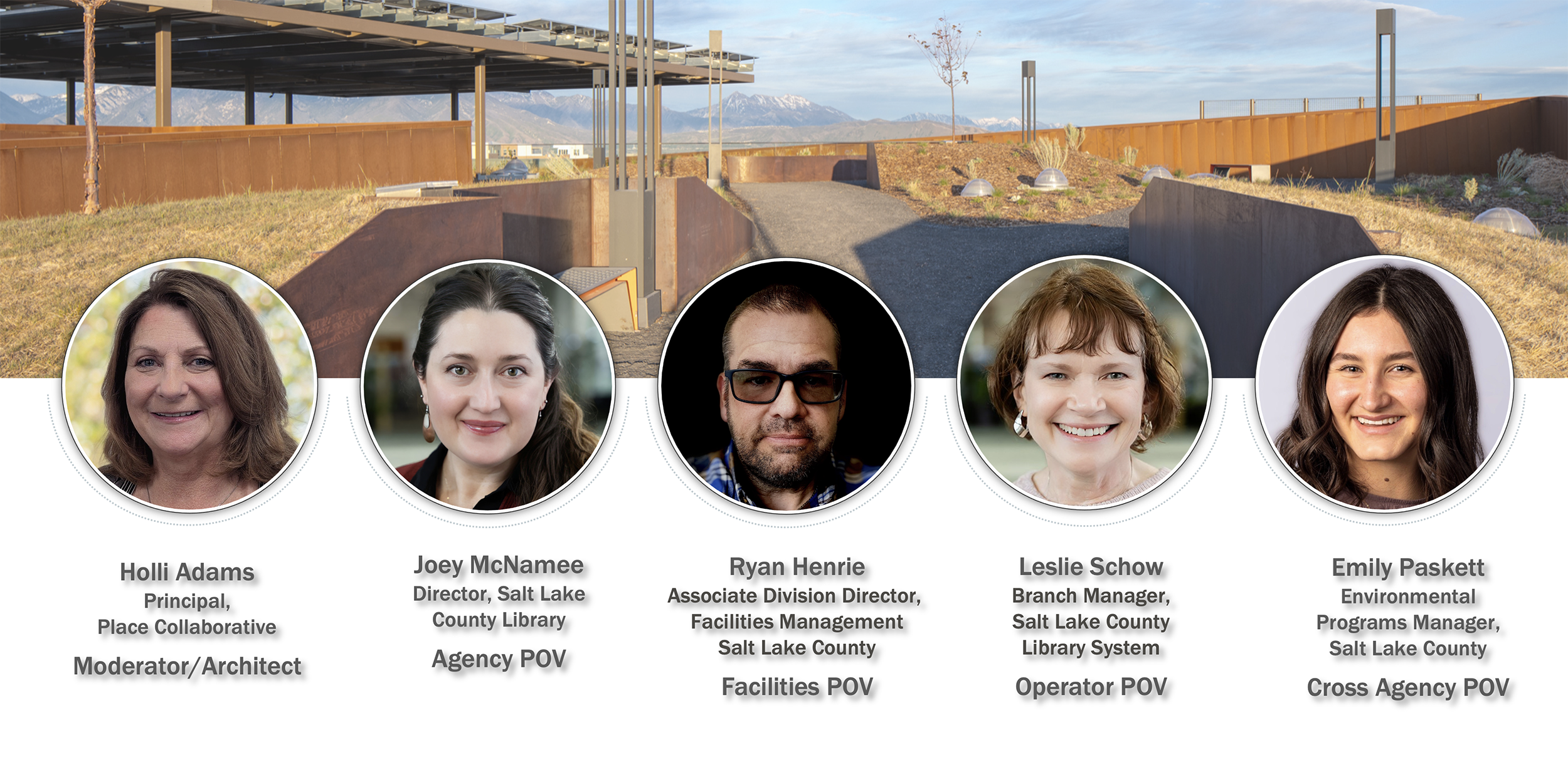 Holli Adams represented Place Collaborative as part of a presentation of the Daybreak Library’s Pathway to Net Zero Certification along with four notable Salt Lake County Leaders – Ryan Henrie, Facilities Management Associate Division Director; Joey McNamee, Library Director; Leslie Schow, Daybreak Branch Manager; and Emily Paskett, Environmental Programs Manager.