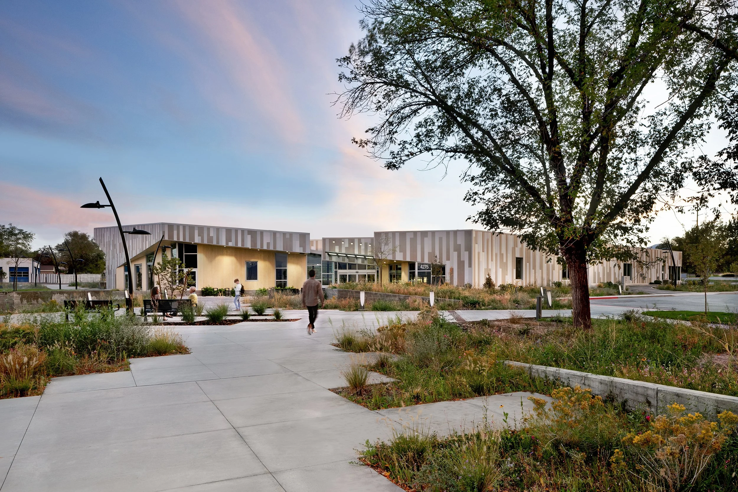 The new Kearns Library includes many community, discovery, sustainability, social, site, and parking upgrades identified during the robust stakeholder outreach process that kicked off the project planning. The new library replaces a small 1950s era original 12,000 SF library that had served the community well for over 60 years.